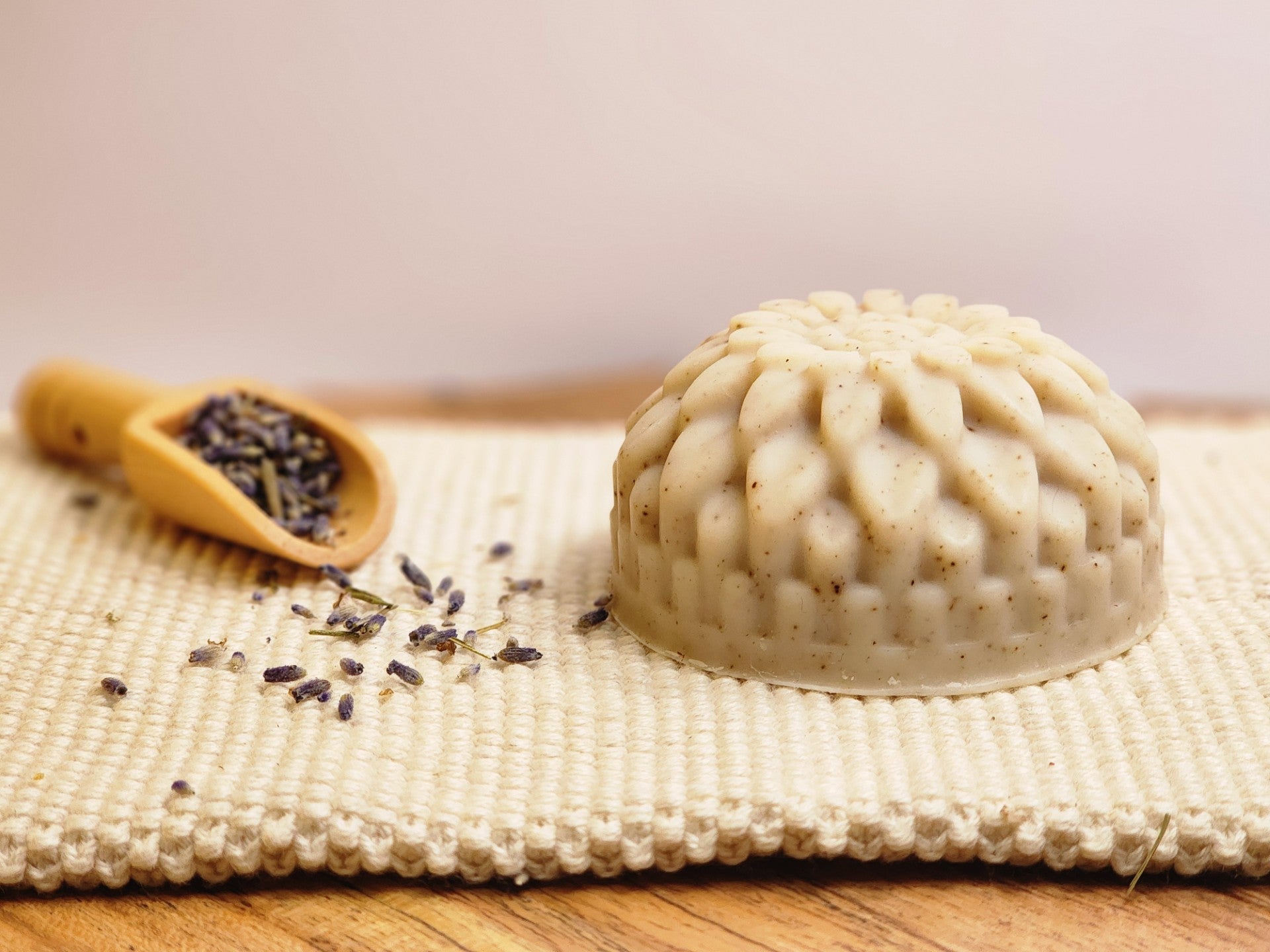 Crafted for delicate skin, Velvet Bloom is a gentle facial bar enriched with jojoba oil, shea butter, and soothing aloe vera juice. Its creamy lather cleanses without stripping, leaving skin feeling soft, calm, and nourished. Naturally tinted with Brazilian Purple Clay and Alkanet Root powder, this floral-shaped bar carries a subtle mauve hue and offers mild exfoliations. Scented softly with geranium and lavender essential oils, the aroma is delicate and comforting, like the breeze through a cottage garden. Designed for daily use and lovingly made without synthetic colors or fragrances. A soft touch for sensitive souls. Please note: